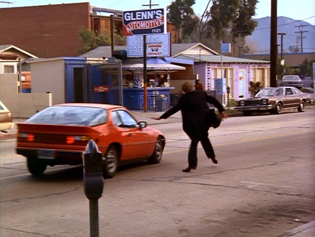 We see a red Porsche coupe (924 or 944 model) in the District of Columbia Stadium parking lot in SD when Bela runs away to hide in Amanda’s car… we see the same red Porsche in IANNNHIEBAS when Lee is trying to save Amanda from being kidnapped by the baddies: