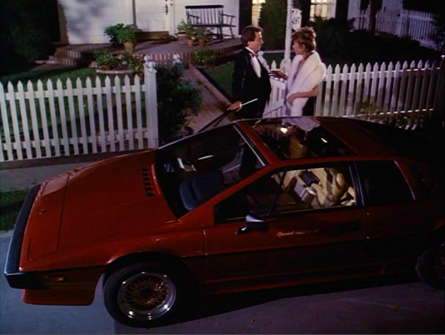 In The Mole, baddie agent (mole) David Benson drives a snazzy-looking copper/red car to pick up Amanda for their date: a Lotus Turbo Esprit. Specifically, this is (or is a clone of, but I believe it’s genuine) one—number 39—of only 47 “Investor’s Special Edition”/”Silver Anniversary Edition” Turbo Esprits released to US investors in 1983…  cool one of the identifying features being the removable tinted roof hatch, and—of course—the Special Edition 39 lettering on the driver door. (More information about these Special Edition Lotus Turbo Esprits can be found at http://www.thelotusforums.com/latest-news/our-news/back-in-the-us-of-a/.) The base model colour was silver/grey, but 33 of the 47 were produced in other colour combinations—this being one of them.