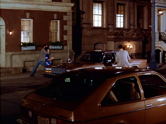 The brown Chevrolet Chevette hatchback randomly parked on the street when the baddies kidnap Bela in SD is overtaken by Amanda—when trying to save Lee—in TM: