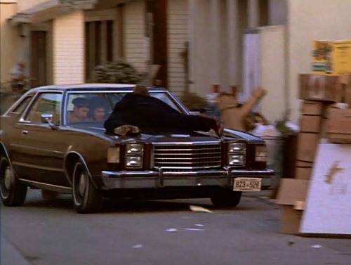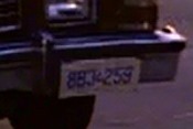 )… but after plowing through those boxes, and some others, it’s back to 8B3-259. Then, after Lee is thrown off the car, the plate disappears from the rear—but magically reappears just in time for Lee to note the number so that Francine can later report “I ran the plate. The car was stolen from Delaware and P about 3 o’clock this morning.” (Sorry—too distant for me to figure out which plate…) Finally, when Amanda escapes in the car, the plates are back to 8Z3-526.