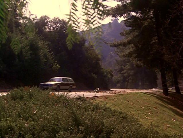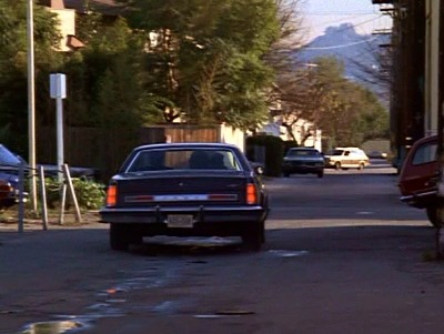 In IANNNHIEBAS, we can see where the baddies got one of their cars from. (Or where/how it was previously used on film; whatever…) The brown Ford LTD II coupe that Amanda escapes in—and then crashes—shows the remnants of lettering indicating prior ownership by the County of Riverside (east of Orange County; southeast of Los Angeles). ![]()