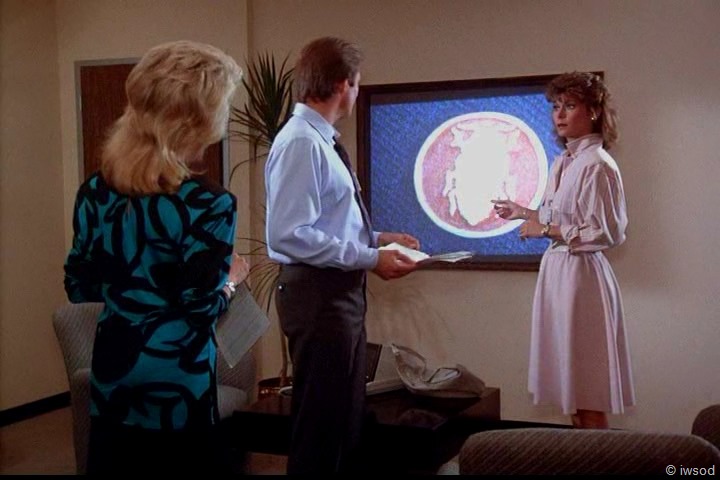 Definitely ironic that Francine is commenting on someone else’s strange outfits. At least they didn’t wear theirs out in public like Francine. I like how Amanda is actively engaged in the discussion about the case. She enters Billy’s office as part of the group, not showing up later, knocking and having to be brought up to speed and told only a need to know amount. She’s not asking inane questions or having to have everything explained to her as if she is a child. She is a part of this little core group and her logic is accepted and appreciated.