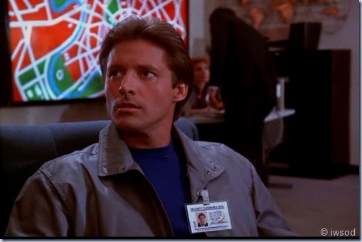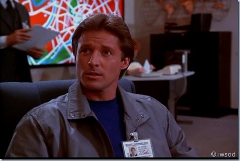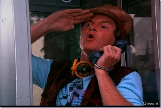 In my mind I hear Knucklehead using much stronger language than he does in this scene. (Just like I imagine him listening to Aerosmith and not the ludicrous on hold melody we hear coming from his headphones). The writers I guess had to tame it right down for prime time viewing but I like to think the ultra-tame language used in this scene is the writers hinting us to “insert own expletives here”.