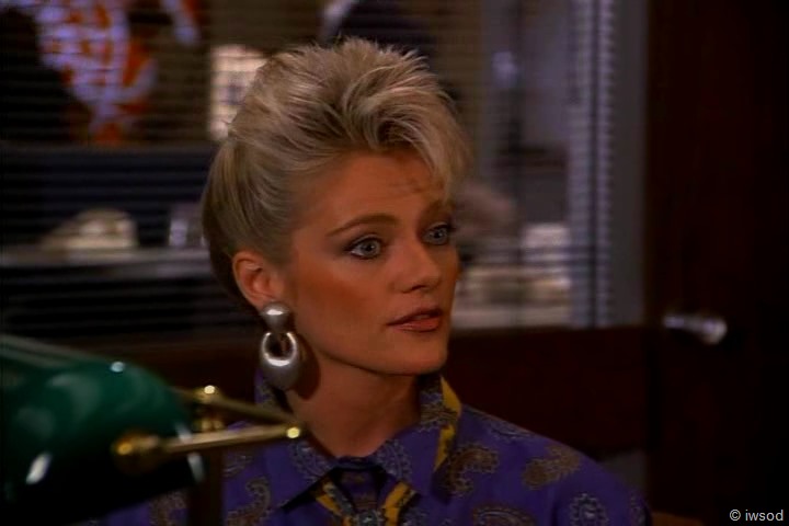 Francine’s outfit : There was an unfortunate – and mercifully brief – fashion in the 80’s for woman to wear ties. I remember the female director of an organisation I worked for at the time went through a phase of wearing a shirt and tie. I recall thinking at the time that it made career woman look like they wanted to be men, or thought they could only get ahead if they behaved and dressed more like men.