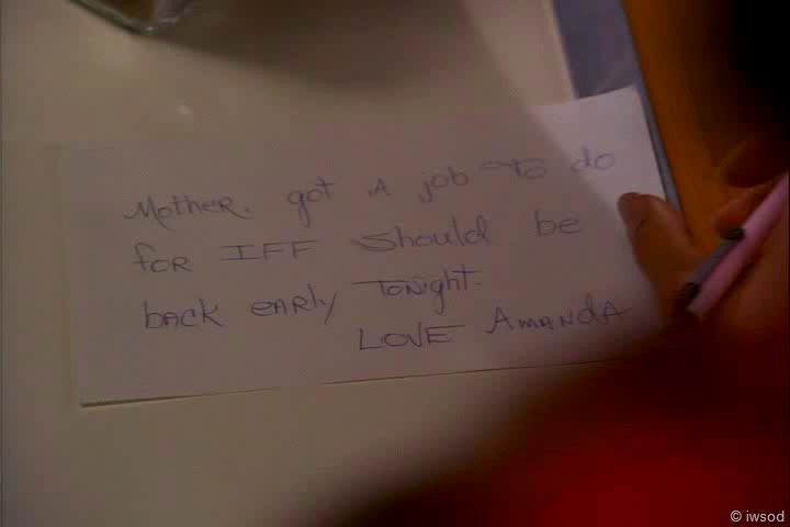 She leaves a note for her mum saying she has a job with IFF but will be home that night.. ![]()
