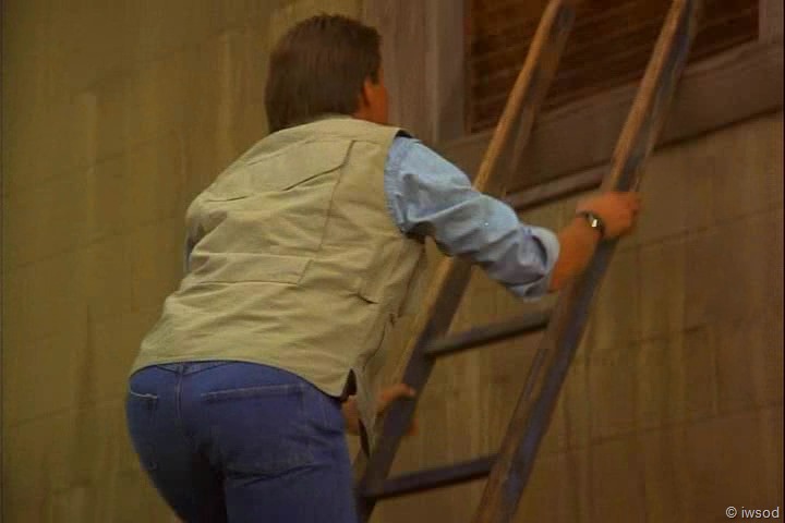 She turns her head to look around and seems to forget Lee cheeks are right in front of her on the ladder 😉 .. she reaches out to grab the ladder and instead.. accidentally grabs a butt cheek! Winking smile whahahaaaaa!!