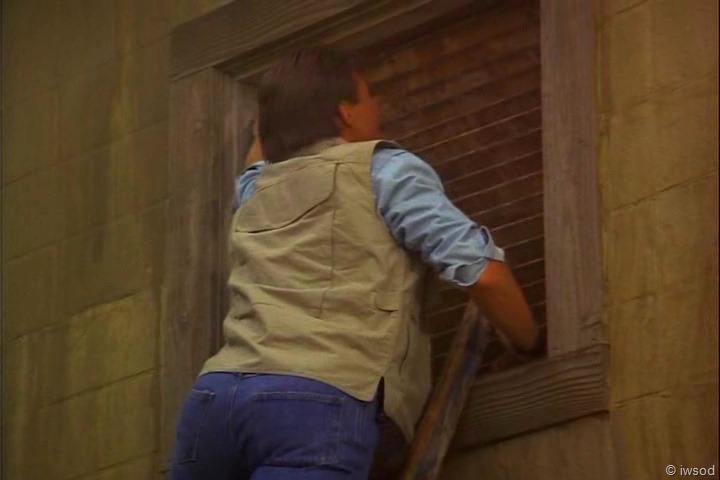 Having reached the top of the ladder, Lee cheeks err I mean checks out the grill there.. butt err I mean but how will he get in?