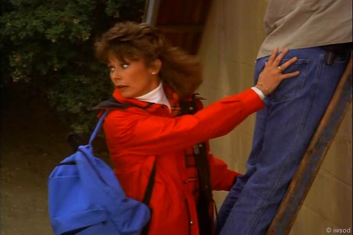 3. I agree with Valerie that Lee is probably so focused on work that he didn’t react to Amanda’s touch. If that had happened to me at work, I would have blown it off as an accident that can easily happen when two people share a ladder (not a scenario most people have at work, I admit, but actually something that happens to me on occasion). They were out in the wide open, and this wasn’t the time to react or call attention to it. However . . . Cyd mentioned that once they get inside, Lee doesn’t appear to be holding on to Amanda by the waist?? Maybe that’s his subtle comeback?