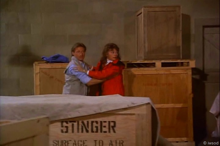 they both keep holding each other absently as they take in the room..they did this in Sour Grapes too when the wine case crashed down.. hmm!  (any excuse.. )  They can’t quite believe what they have stumbled into.. yes Lee this is no rookie assignment now!! [I think it’s the ultimate irony.. after all – Lee should know by now that if Amanda is involved in any small way at all in a case that sure enough- it will end up being a huge case where they will need to save the country! save the world!  or okay.. maybe a head of state or a microchip or something! Winking smile ]