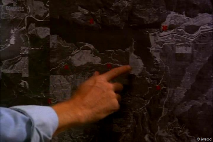 Hmmm, not sure about those hands. It’s hard to tell, they aren’t close-ups. It’s possible, but he’s been out running around in the woods and all, so if his hands looks a little dirty and his manicure off, it’s probably because of that. 😉 Acutally, I don’t believe those are Lee’s hands. In the next shot, we can see Lee’s watch on his right wrist. It’s not in the picture where he’s pointing to the map. So, definitely NOT Lee’s hands. Phew! I’m glad!