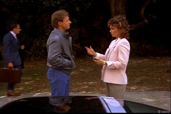 I never noticed this before, but this is like fair turn on the ‘you’re a cab’ moment – this time Amanda comes out on top- meanwhile Lee and Amanda are again jostling about the work and doing the whole flirty thing.. Lee smirks at Amanda as she walks to the car.