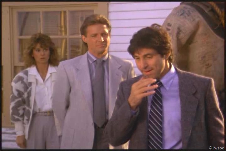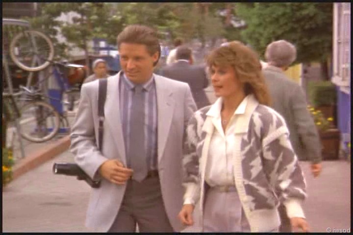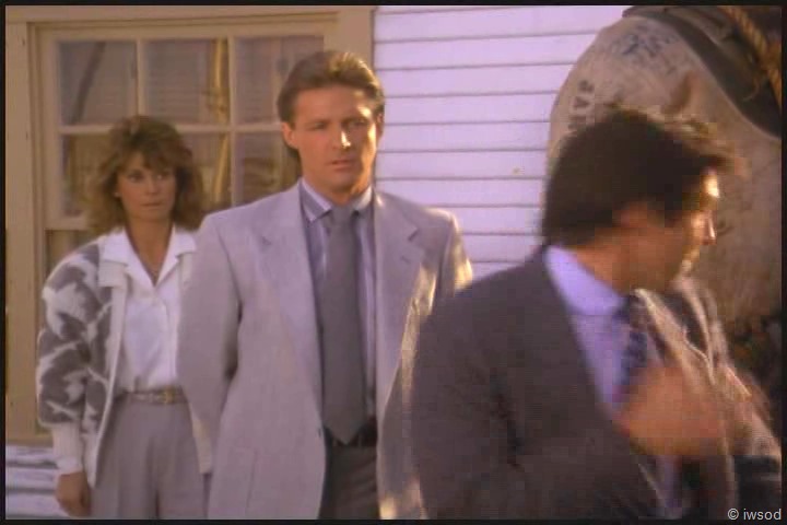 I also wonder if the powers that be were not paying attention to the costuming when working on filming order. It seems odd that Lee and Amanda would leave Colleen and go put on the exact same clothes as the previous day. I think there’s a scene where you see the ‘Vette going down the street and you hear Lee saying to Amanda that now that Colleen is safe that they should check out the marina. It’s like it was added in later. Whenever I see this scene I get distracted by the sudden change in clothes.