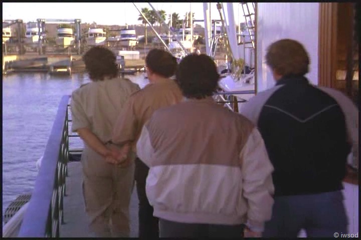 Okay, Lee putting the boat over the unconscious baddie? That is not Lee Stetson.. that is a way more buff stunt man me thinks! [that and no soggy bottom is a give away