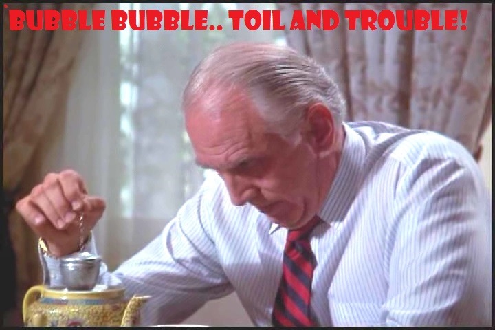 Prescott: Well his ex-wife works for a Government production house – International Federal Films. I’m having it checked out; [whooo!!! a Government production house huh! I think that IFF should have gotten Colleen and Bart to head to Estoccia and report in! Winking smile could have been fun to have an overseas couple checking in from time to time! ]  …and her two sons go to school.  [I take it back.. that is not tea they are drinking.. it is some form of evil kool-aid]