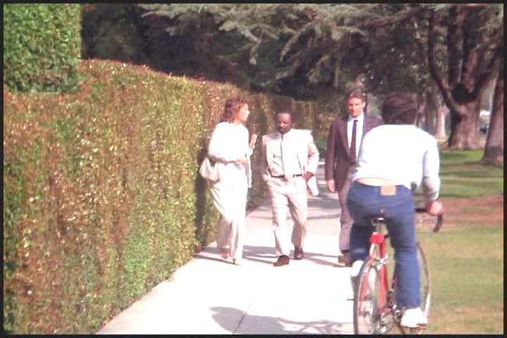 We find Lee, Amanda and Joe in the distance walking toward the frat party. Only “Wait till the midnight hour’ is really loud and I can’t make out what they are saying.. glad kiwismh could hear!
