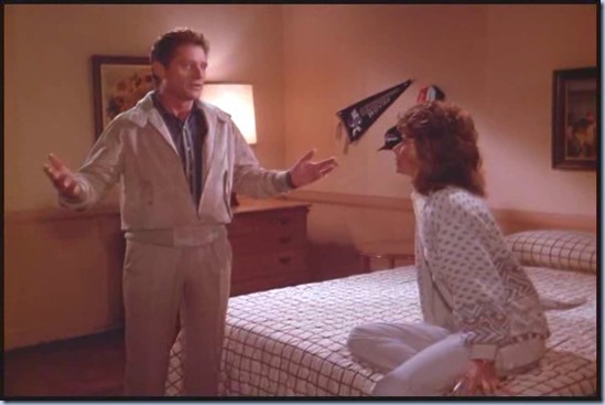 This is what happens when I have too much time on my hands. My week is going to be a slow and short one as we have to cram in these standardized tests (the bane of my teaching existence) and we are soon to be on Easter break. I therefore have not been able to teach much, which leads to a lack of homework for the students and a lack of paperwork for me. So I decided to whip out my SMK DVDs and do a little drooling and swooning. So hard to function and do anything when that Lee Stetson is so brilliantly bold on my TV screen. I decided to peruse this episode again and noticed something that happened at Dooley’s just before Lee and Amanda were discussing her divorce. It comes up again in the tag, but I will hold off discussing it until we get to the tag as I think it goes best at the end.