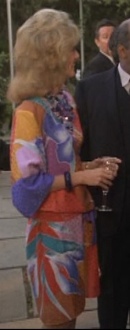 2. Wasn’t that “Milka cow outfit” (as I call it) Amanda wore at the baron’s reception/party in “The Times They Are A Changin'” supposed to be the gown she borrowed from Francine for the occasion? Because she didn’t bring one of her own? (Though it could be debated it might not actually have been Francine’s since it wasn’t exactly a gown but rather, a top and pants, wasn’t it? Maybe Francine packed two evening outfits? Or they got the one Amanda wore elsewhere?)