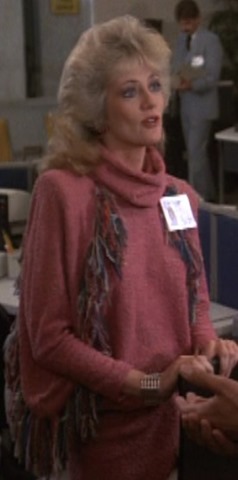 Yes, Francine is pretty. I’m not sure I can go all the way out on that limb with you and call her gorgeous though. I have a hard time discounting the “inner Francine” and the volume of her hair. Puffed up hair = puffed up person. I know it was the way hair was styled back then, so it is not necessarily a statement about who Francine was – she was good at her job – but the volume and the fact that her blond color doesn’t look totally real is off-putting to me. She does look very good in blue though! My favorite look on Francine is in S3, so I’ll be sure to point it out when you do that post. 😉