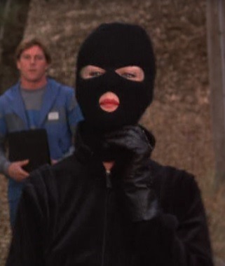 And in A Class Act, she plays the cat burglar – who then attacks poor Amanda shocked . She even has matching ear-rings under her fur, I mean balaclava.