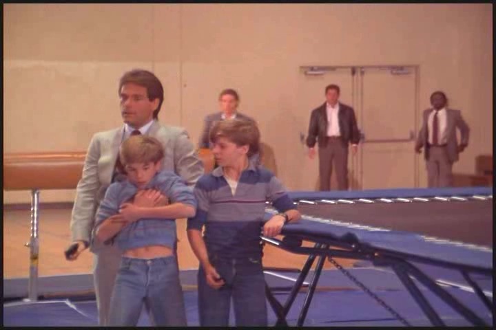 3. The former teacher (and current mom) in me is freaking out that the two boys were allowed to play on a trampoline unsupervised. Can we say neck/back injury/lawsuit waiting to happen. That school is pretty lax even for the 80s. I wonder if there is also a shooting range they kids could hang out in without any adults around to ruin their fun.