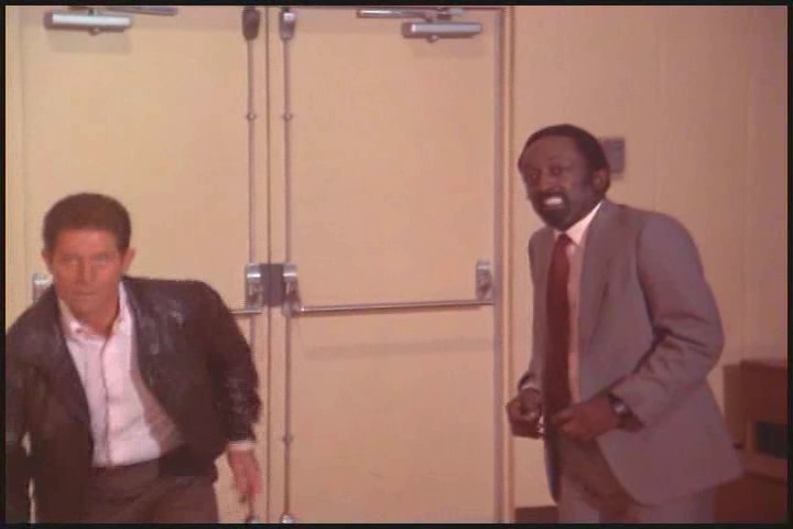 The boys run with notShamba to Amanda (and now Mrs Dennis- who doesn’t seem to be calling for help even though there is man with a gun in her gym.. Some principal! I should have words with Mrs Dennis – she doesn’t know Lee is an agent!)