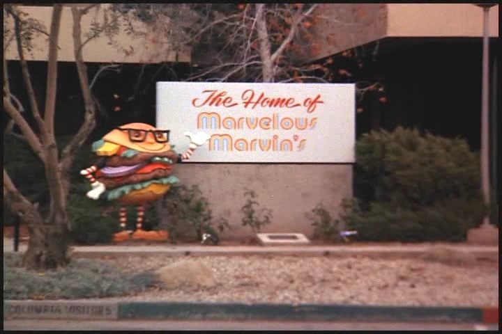 Back from the commercial break, we see another lovely exterior shot of Marvin’s at Columbia studios.. with the parking space for Columbia visitors. Whooo I think I saw the burger’s hand move!!!! Honest!!!! whahahaa