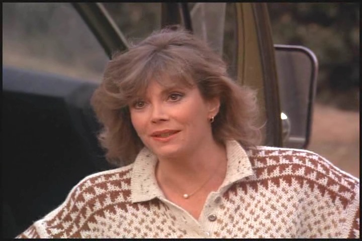 I’m not a fan of 80s fashion. Not one bit. But I’ll admit that while I didn’t have a sweater like Carla’s got no here, when I was a teen watching this show, I probably would have wanted one. The repetitive geometric pattern on it would have appealed to me.