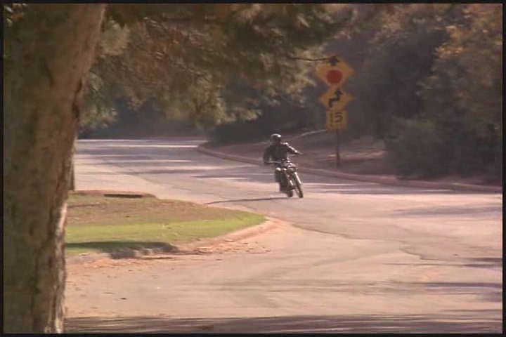They see the motorcycle approaching.. Is it just me or does that motorbike sound like a fly?!