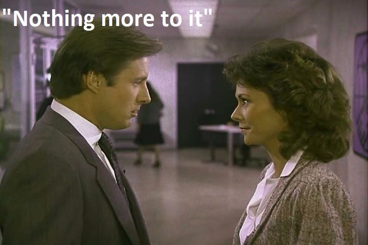 I also really would have loved to see Francine out of the office and in action more often. I mean, yeah, the show IS called “Scarecrow and Mrs. King” but they could have had Francine and Amanda work together more often than just that once in “Life of the Party”, especially since that one worked out great. (Never mind Francine’s dislike of Amanda – it was pretty obvious that they CAN and WILL work together when they have to.) They could have thrown in another episode or two like that one, maybe with Lee getting in trouble and the two ladies working together to get him out of it? That way, everyone could have had their share of Scarecrow while Francine could have been more active. Really, for everyone always telling us what a great agent she is – including herself – we just don’t see enough of that. (Typical case of “telling” instead of “showing” – in writing, you’re always told “show, don’t tell”. How is the reader/viewer to accept someone is “one of our best” when they can’t see it with their own eyes?)