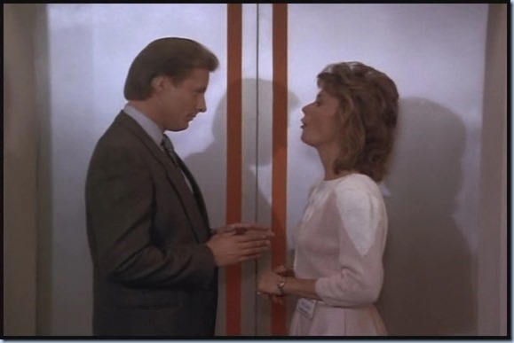 I’m wondering if (at the elevator) Lee is thinking back to his ‘field experience’ line with Amanda and therefore is waiting to see how Amanda is responding to his suggestions before he smiles or pushes further with his suggestion.