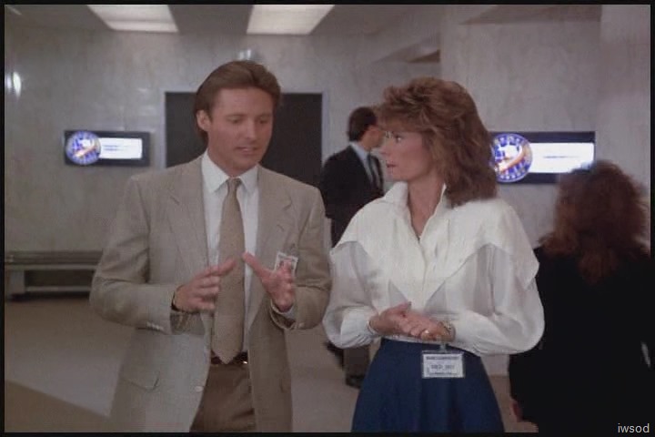 Back from being lazy and procrastinating…First of all, don’t like that blouse that Amanda has on. It looks a bit like something I saw at a western wear store once. Those flaps could almost be fringe. Maybe she’s attempting a more professional look at work, but I’m not getting it. I would assume she is also sporting a visitor’s pass attached at her waist.