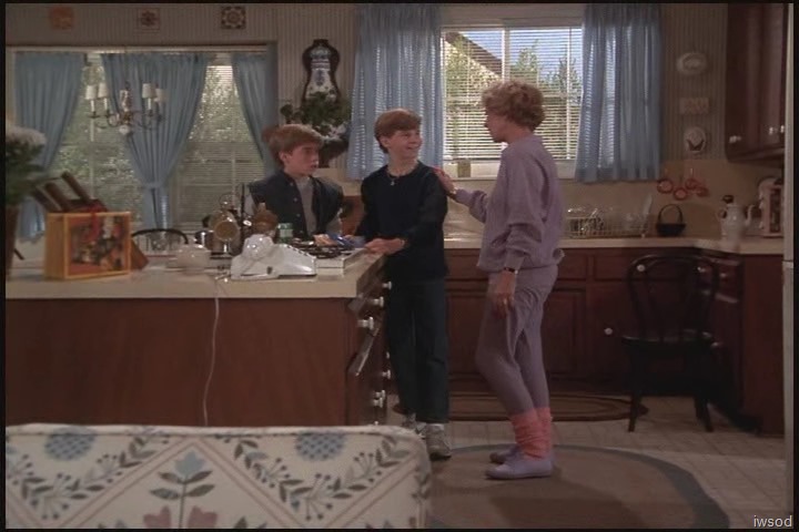 Anyway, the boys are ready to serve Amanda up a plate full of junk food they found in the cupboards – notice the chair in the kitchen. I presume that meant to indicate the Philip and Jamie put it there to climb up to reach the junk food cupboard. (Is that where the marshmallows are hidden?)