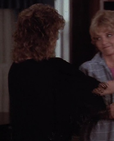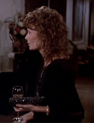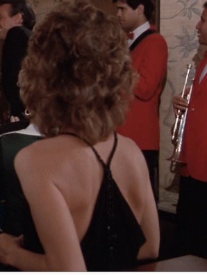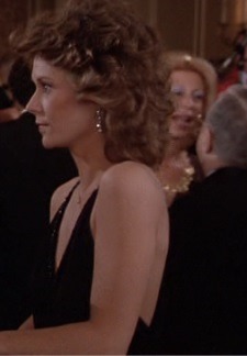 And in the running as the worst formal outfit of theS2E16_formal_Amanda entire series: I present: this black dress covered by a fish-scale inspired jacket (Life of the Party). Plus there is the hair don’t. And ear-buttons which set off the scale jacket. Even more frightening is the fact that KJ wore this to the Golden Globe Awards in 1985 (See Iswod’s research at Neds)