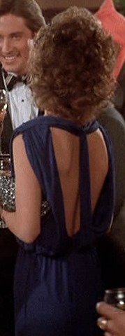 Not sure what that hair accessory is (a bow? a clip?) but I love this dress from Dead Ringer S1E14_blue_open_formal_Amanda . The daring back is fun and I like the colour.S1E14_blue_open_close_formal_Amanda Not like the usual royal blue – more a French navy.