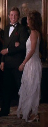 Next is my favourite formal outfit of the entire series and the major exception to the “white is boring” rule: the one I’d love to own; the one I wish I’d look like Amanda (The Three Faces of Emily). The fit, Lee,  the beading, Lee, the asymmetrical feather, LeeIs there anyone out there who doesn’t want to be Amanda in this scene?
