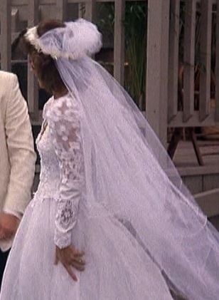 I like what you said about the SOS dress doubling as a wedding gown, ‘short notice.’ That’s one way to do it. 😉 I would have preferred to see her in something like that or the “Always Look A Gift Horse…” dress in white for the SOS ‘wedding’ with a lighter veil. That actual veil was too much. Although jumping out of the car in SOS probably wouldn’t have worked in some dresses.