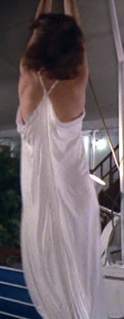 Next up: Ship of Spies – we have the dress for hanging from the lifeboat outfit – S2E12_white_boat_hanging_formal_Amanda which, as Iwsod points out, is basically the white version of the black dress in Always Look a Gift Horse in the Mouth. Yawn, it looks better in black.