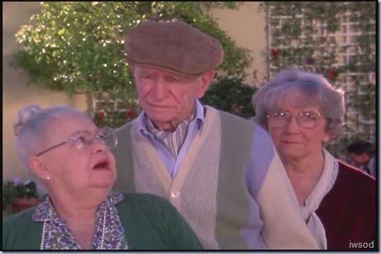 When I would visit my grandmother’s senior home, I was always amazed and amused by the amount of flirting that went on! My grandmother would get so worked up about the women that would throw themselves in front of the men (so to speak), but she would smile like a bride when a man turned his attention to her. Because of this, I am more tolerant of Rupert now versus when I first saw this, but I agree with you, iwsod, that they really went OTT with the stereotyping in this scene. Even making one lady a volleyball captain in a way feels like a cliche just as much as the bread-baking … not that women that age usually play volleyball but it seems quite cliche for a tv show to give an elderly character an outrageous hobby. Not sure I could have done it better, but how it was done leaves me feeling squirmy. (Mentally noting another scene in this episode that leaves me similarly squirmy. We’ll see if I remember it when we get there.)