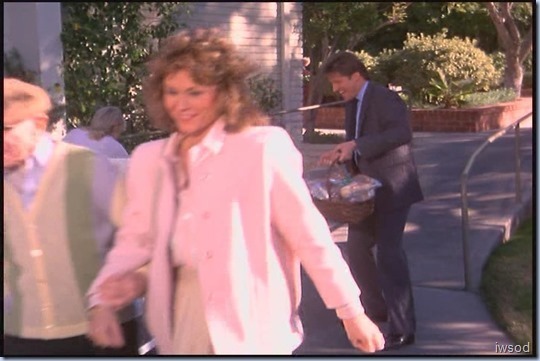 [Oh purlease.. that old comedy chestnut of the frisky senior.. ugh.. while I’m loving seeing Lee and Amanda – this scene seems to have every cliché in the book (except the book cliché!) I’m so glad we didn’t get one of those – ‘whoooo this is the Amanda you’ve been telling us about whooooo’ – that would have been just too much!!]