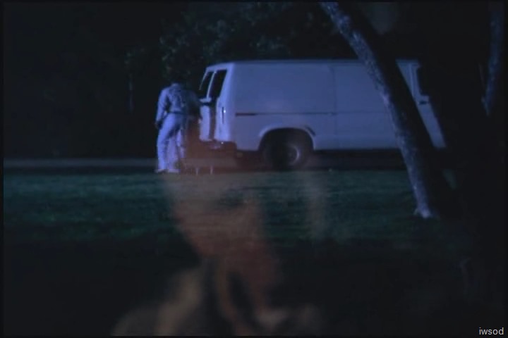 Then it quickly cuts back to the van at night. Which pulls off the road, I guess into Blue Star insurance.