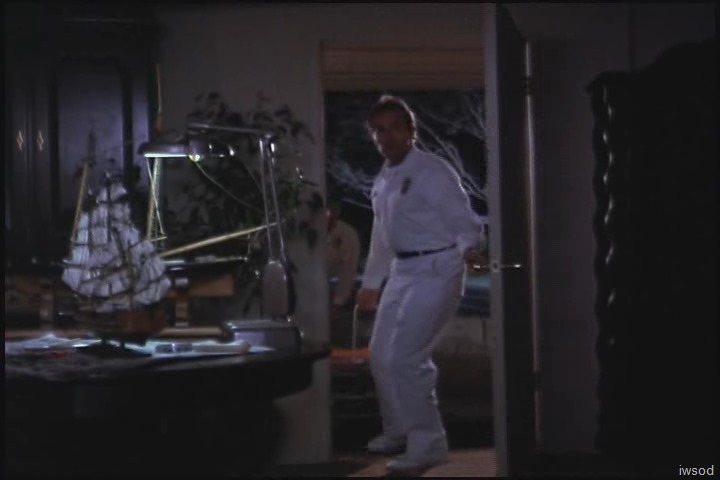 Funny that when we see the man in white entering Rupert’s room (i.e., the ‘night pirate’) there’s a ship sitting on his desk.
