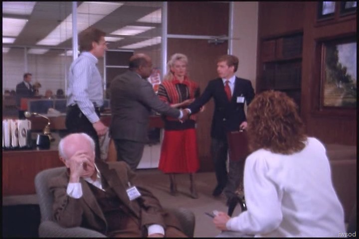 I just assumed that Lee and Amanda were out all night on stakeout. The establishing shot of the Capitol before they drive back into Birchwood to get Rupert clearly reflects the early morning sun, and the angle of the sun seems right as they do drive into Birchwood. It always bugs me when a scene is shot in an obviously early morning sun angle when it’s supposed to be afternoon, so at least that seems right, here. Wonder what excuse Amanda gave Dotty? Another reason to miss her.