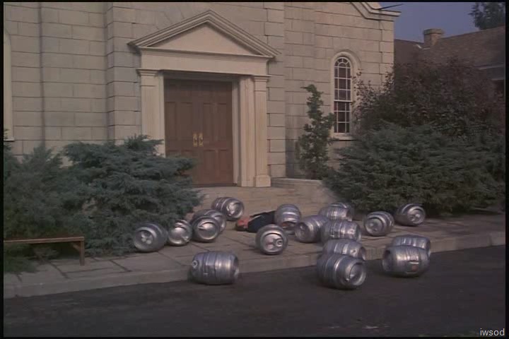 This is an intriguing start to the episode. They must’ve been empty beer kegs… no spillage. I would’ve thought full beer kegs would be more lethal.
