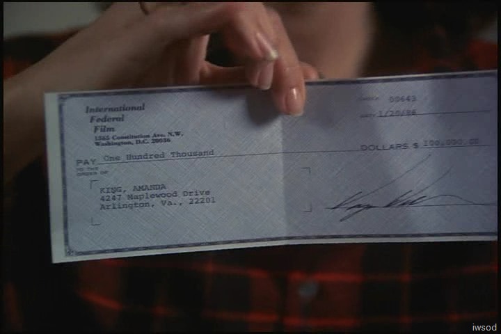 We see a (high speed lol!) close-up of the cheque, made outย to Amanda King. Whoooo so itโs January 1986.. thatโs good to know