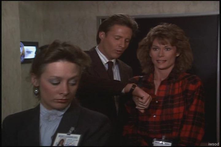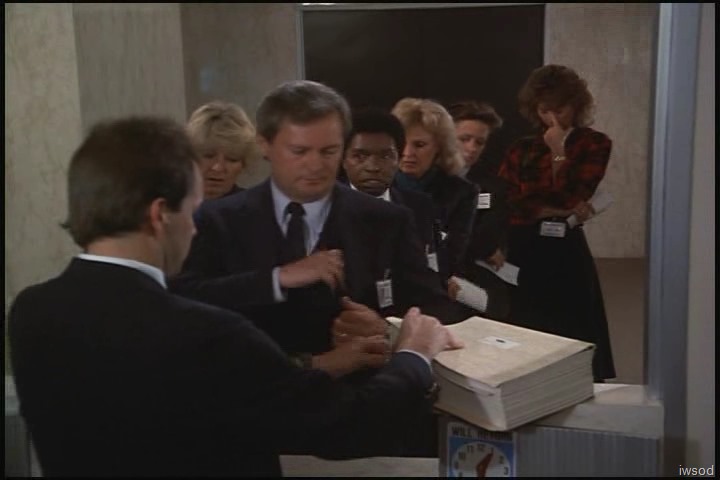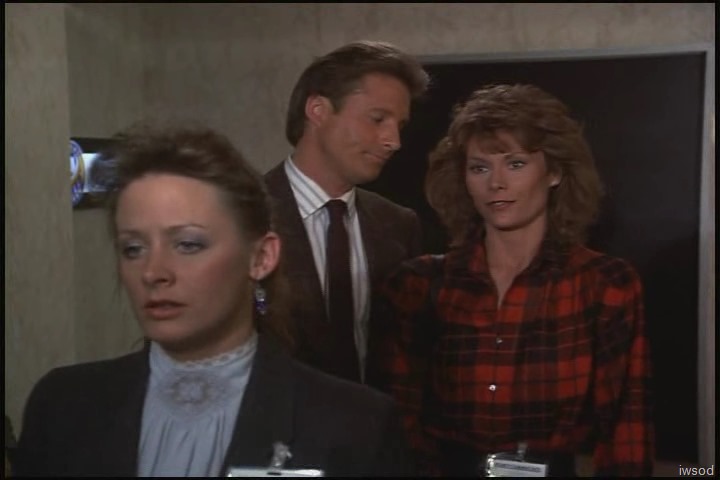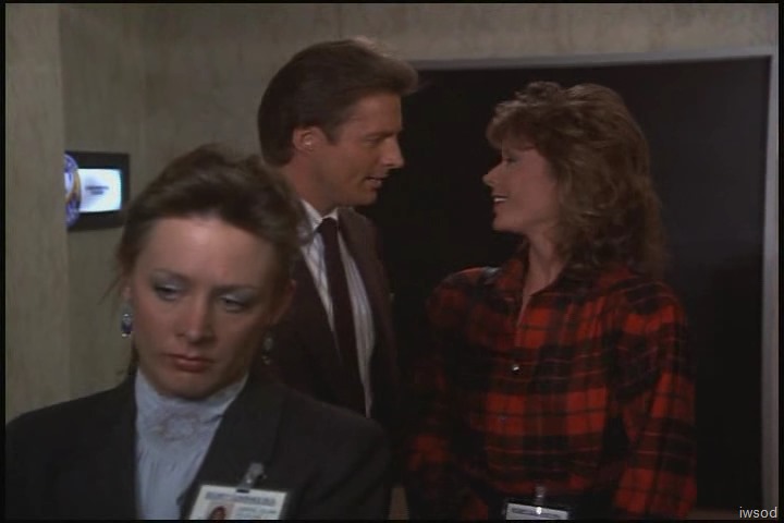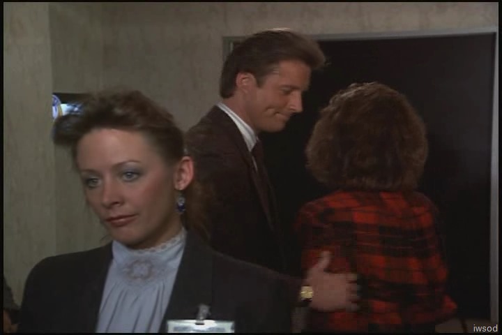 I’m loving the Lee/Amanda interaction too — and yep, they do both look really good here! I’m with you, Valerie — so nice to hear Lee’s cheery hello and to be able to tell he’s grinning at Amanda even when filmed from behind. And their banter in line is very sweet, Amanda being able to vent her frustration to Lee, and Lee staying calm and controlled and gorgeous. I’m sure in 1986 the contact in this scene must have gotten my heart all a-flutter! (Still does ๐ )