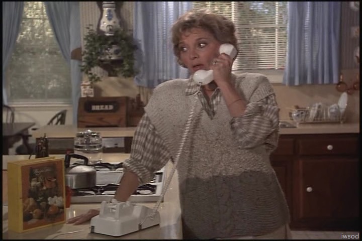 To start rather unexpectedly, I love this little scene between Dotty and Amanda. It acts as a nice little humorous filling in the romantic temsion sandwich. Dotty is still swallowing excuses like that 😀 ? There are swarming termites and she doesn’t know about it???? And I love her replacing the receiver then picking it up to talk to Amanda again – yet again.