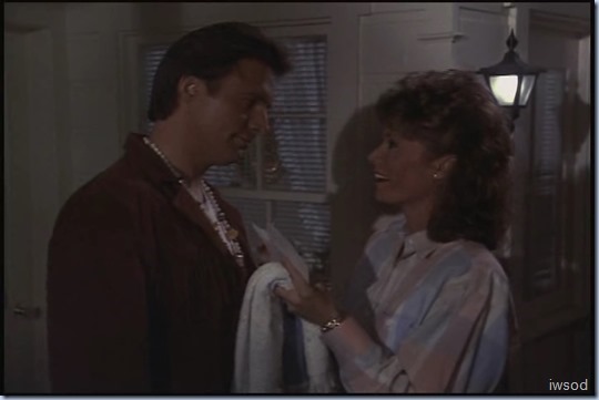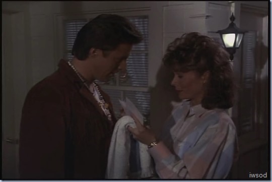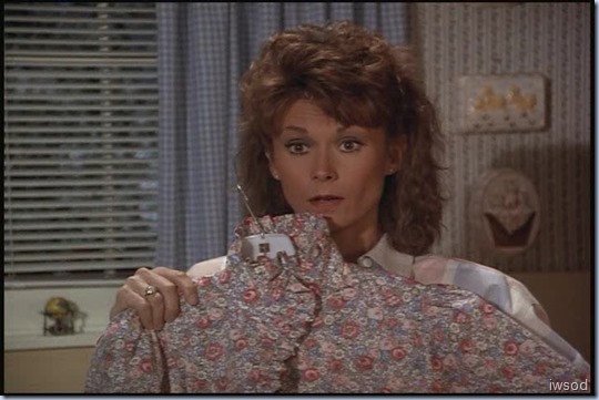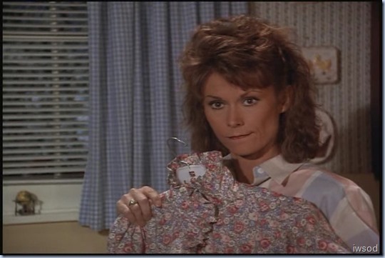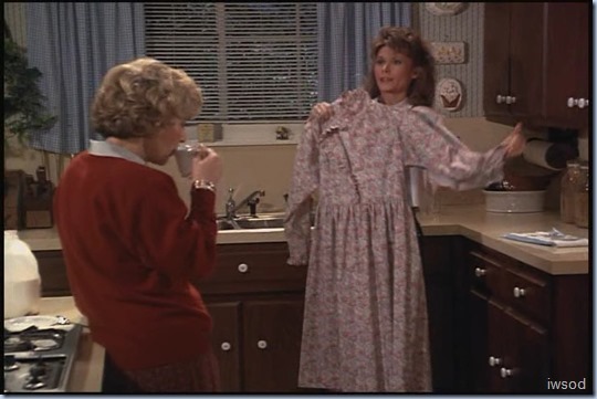 6. ” Sweetheart, I’m sure that’s your imagination… [LOL she is very sure! 🙂 ] …It’s had plenty of time to air out. Don’t worry about it.” I love this line. I like the idea that Dotty got the dress for her. It suddenly makes more sense to me (though, if that were the case, I would have thought Amanda would have been more appreciative of Dotty’s efforts. Must have been in her “I didn’t get any sleep so I’m a cranky pants today” mood.