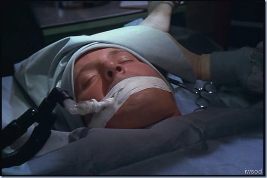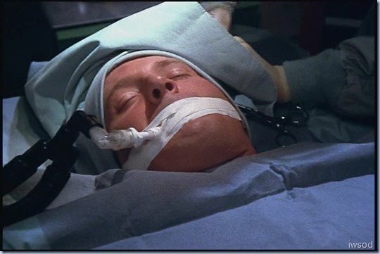 However, many years later kiwismh doesn’t waste time contemplating, she just enjoys a scene featuring Lee with his shirt off. Okay, he’s comatose (or pretending to be) and getting all sorts of nutty medical treatment, but shirtless Lee scenes are rare enough that I’ll take what I can get regardless of the circumstances. 😉