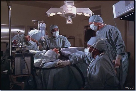 We see Billy and Amanda watching through glass doors. lol.. umm not a very airtight operating theatre..