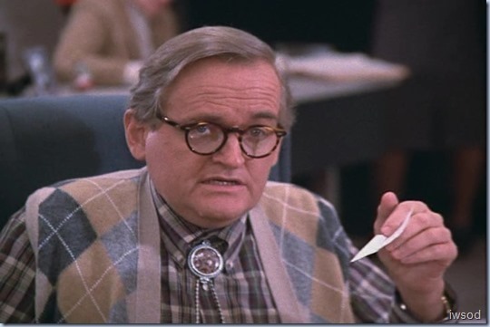 2. I don’t know what Francine is wearing. It doesn’t even look like good upholstery fabric from any era. I wonder if MS balked when she saw what was hanging in her wardrobe that day when she arrived at work. I guess it could be worse though – this material could be made into pants.